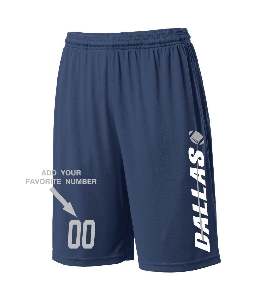Custom Dallas Shorts - Personalized Number - Side Pockets - City Fan Series -Sizes Small - 2XL Available Free Shipping !!!