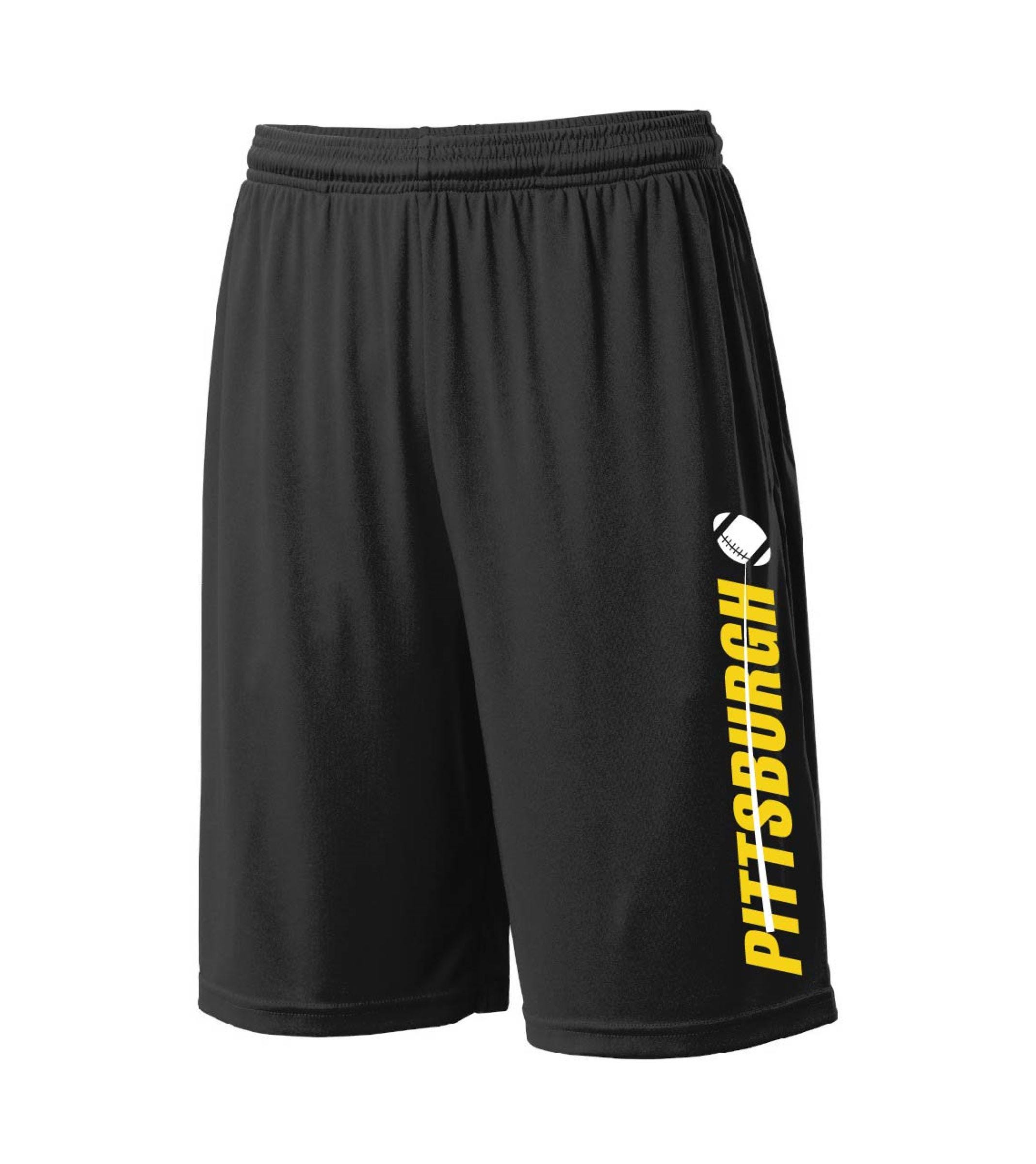 Sizes small thru 2XL are available. An excellent quality pair of shorts for the Pittsburgh fan of any age !!!!!