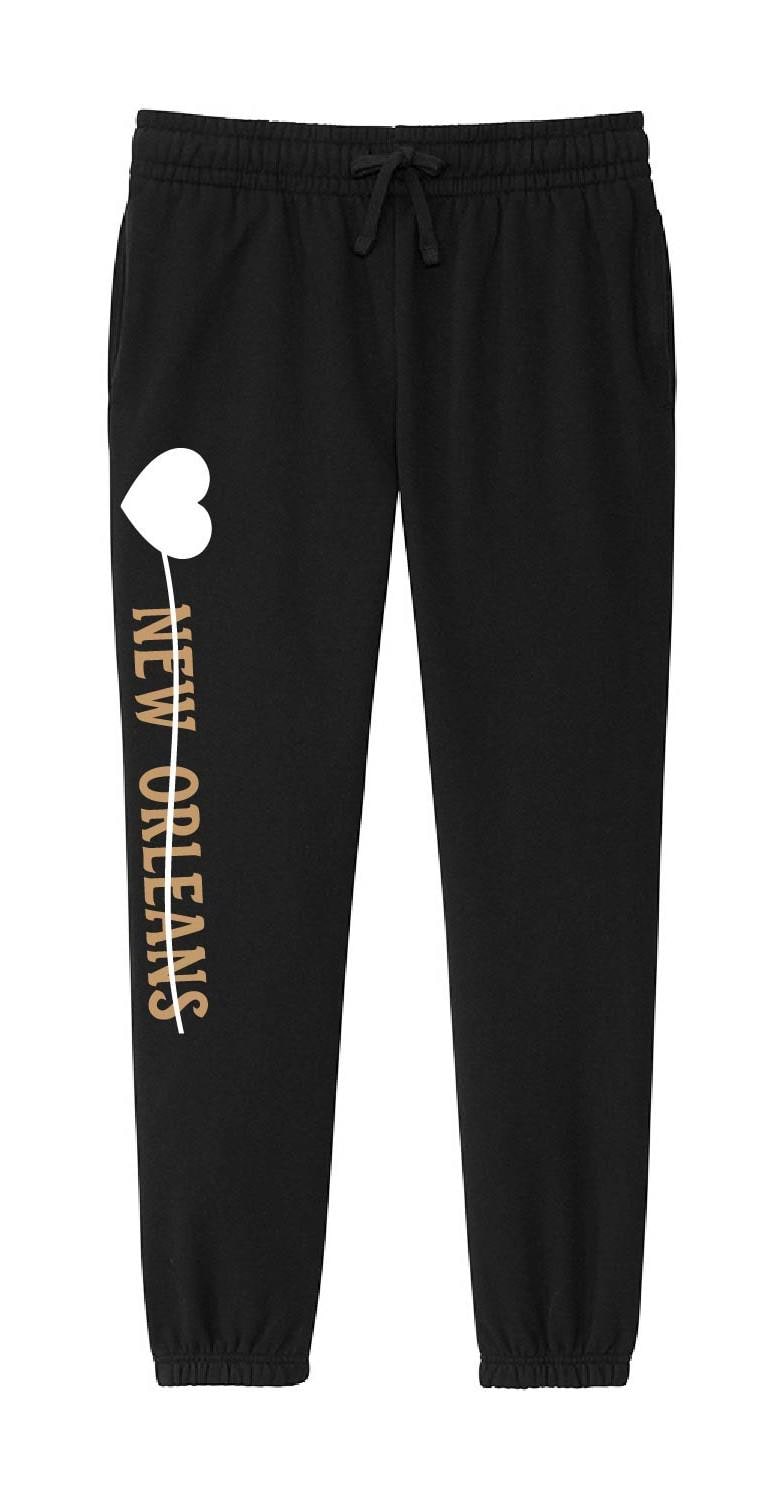 A perfect pair of sweatpants for the female of any age........excellent quality and stylish too. District brand * 8.3 oz. * Side Seam Pockets * 100% Ring Spun Cotton * Side Seamed * Self-Fabric Elastic Waistband and Cuffs. Small (4-6) Waist 27-28" Inseam 27.5" Medium (8-10) Waist 29-30" Inseam 28" Large (12-14) Waist 31-33" Inseam 28.5" X-Large (16-18) Waist 34-36" Inseam 29" XX-Large (20-22) Waist 37-39" Inseam 29.5". Show your support for New Orleans !!